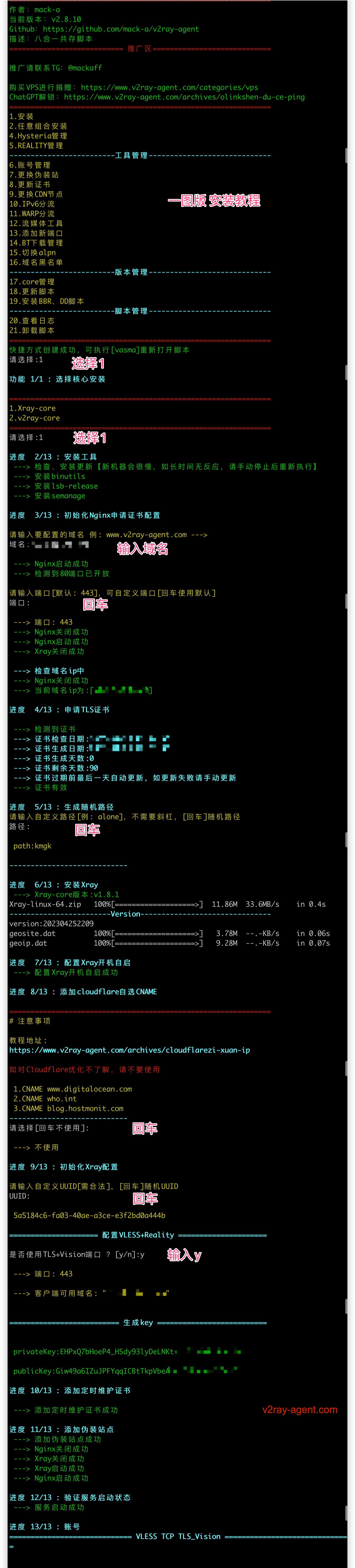 wget -P /root -N --no-check-certificate "https://www.v2ray-agent.com/v2ray-agent/install.sh" && chmod 700 /root/install.sh && /root/install.sh5、图片指导